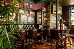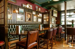 The refurbishment of The Althorp on Wandsworth Common is a celebration of history, craftsmanship, and community. Respecting the building’s heritage, the design reintroduces traditional character while refining the space for today’s guest. Richly stained and polished timbers create a sense of warmth and permanence, complemented by deep-filled leather seating that invites comfort and lingering conversation. Classic materials such as anaglypta ceiling paper add textural interest and an authentic period feel, tying the interiors back to their historic roots.